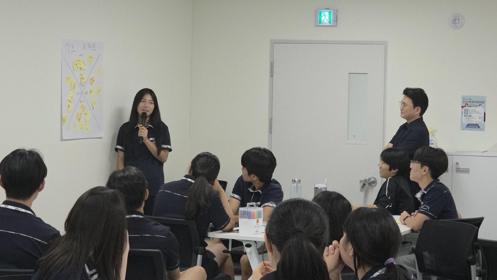 그렇게 시작된 4시간 동안 35명의 학생들은 적극적으로 활동에 참여했습니다. 짧은 시간이었지만 1페이지 기획서를 작성해 ‘아이디어 마켓’을 열어보았고, 가장 높은 가격에 판매된 제안은 학생회가 실제로 추진하기로 약속했습니다. 7개 조에서 나온 7개의 즐거운 상상에는 학습 향상을 위한 아이디어, 진로 고민을 풀어주는 아이디어, 그리고 전교생이 함께 스트레스를 해소할 수 있는 이벤트 아이디어까지 다양했습니다.
