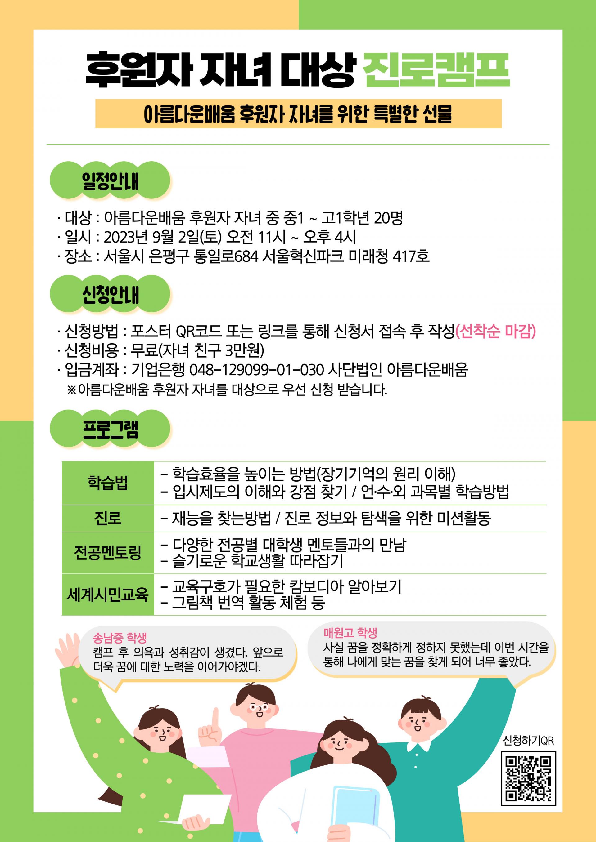 후원자 자녀 진로캠프 신청하기. 여기 클릭!!