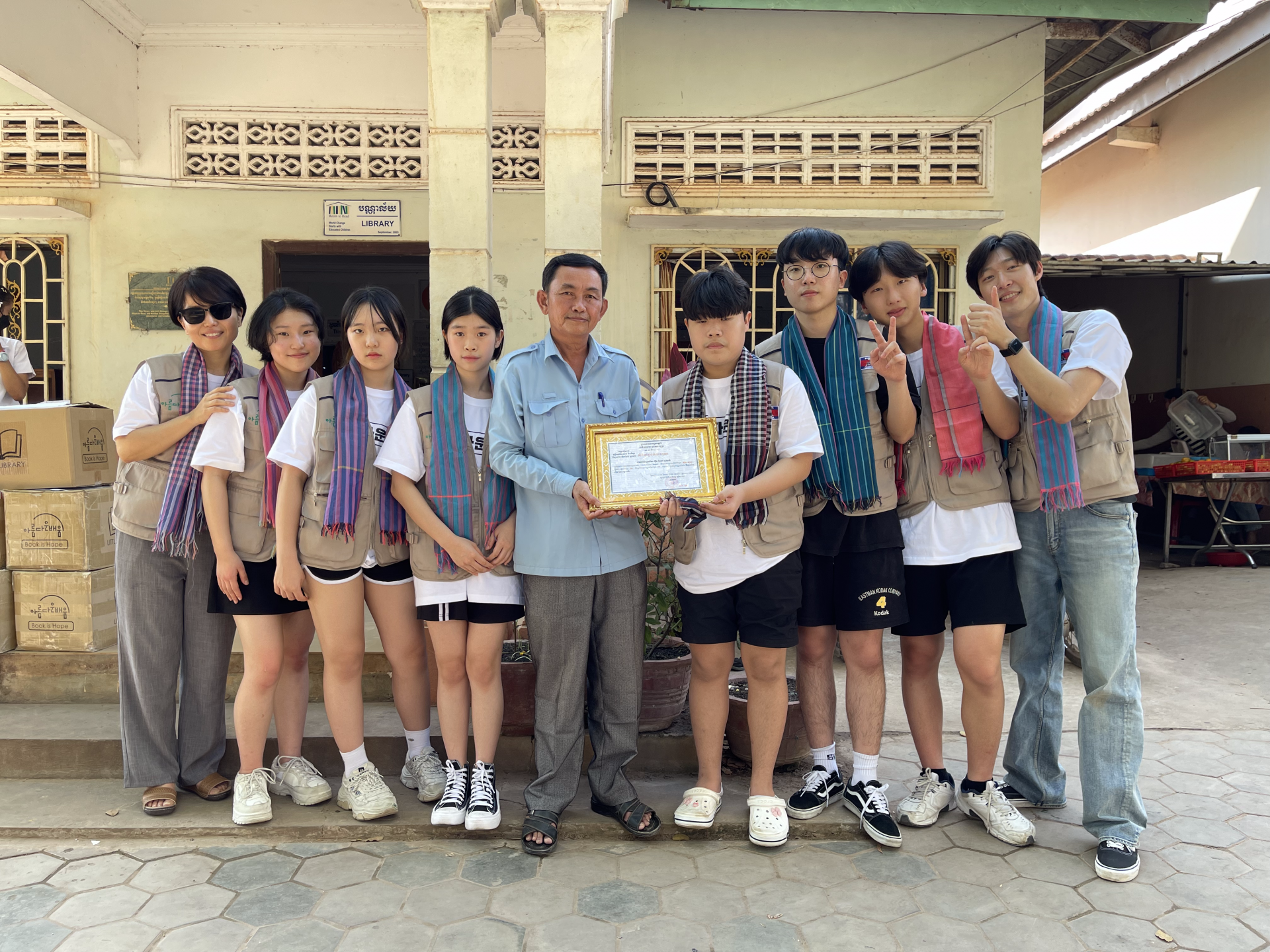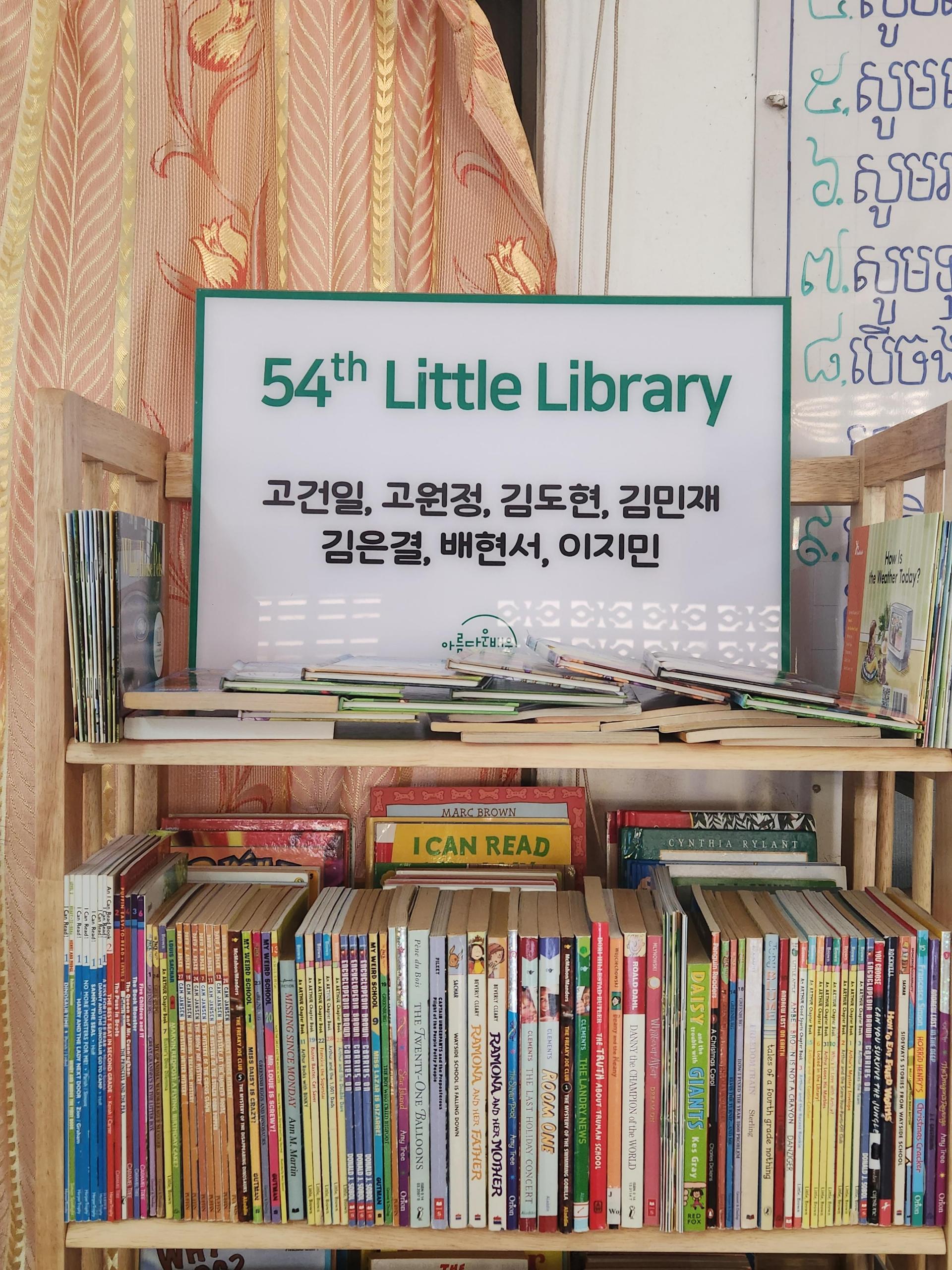 54호점은 지난 2월 캄보디아 비전트립 일정 중에 만든 도서관으로, 참여한 청소년들의 이름으로 지어졌습니다.