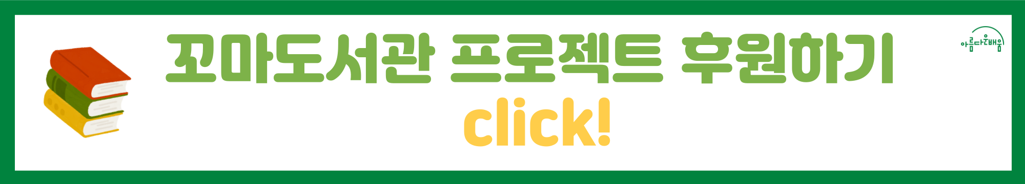 그 길은 멀고 험할 수 있지만, 지금까지 그래왔던 것처럼 한 걸음 한 걸음 후원자 분들의 손을 잡고 함께 걸어가고 싶습니다. 아이들이 꿈꾸는 세상을 위해, 아이들을 중심에 두고 교육활동에 더욱 힘쓰겠습니다. 10,000개 꼬마도서관의 꿈을 이루는 여정에 함께해 주세요!