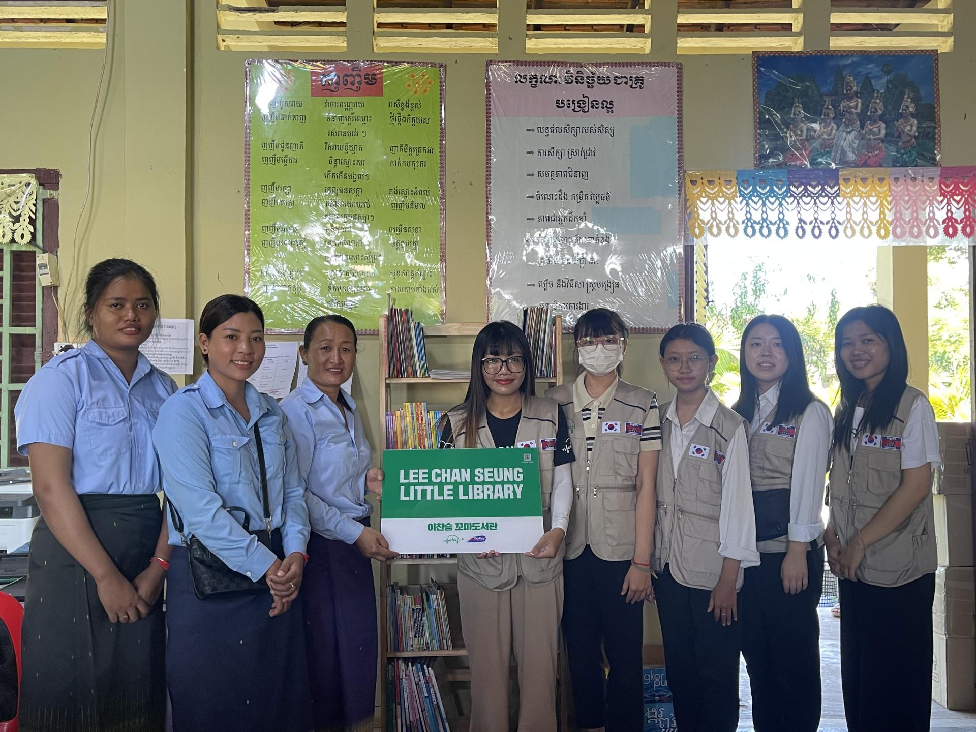 이번 104호점 도서관은 이찬승 후원자님의 지원으로 만들게 되어 '이찬승 꼬마도서관'으로 짓게 되었는데요. 이찬승 후원자님의 지원 덕분에 Puk Russey Krom 초등학교 472명의 학생들이 다양한 책을 읽고 공부하여 새로운 미래를 꿈꿀 수 있게 되었습니다. 캄보디아 아이들의 교육을 위해 도와주신 마음 잊지 않겠습니다. 청년과 청소년이 함께 교육을 통해 성장하는 아름다운배움의 꼬마도서관 프로젝트에 많은 관심과 따뜻한 응원 부탁드립니다. 감사합니다💚