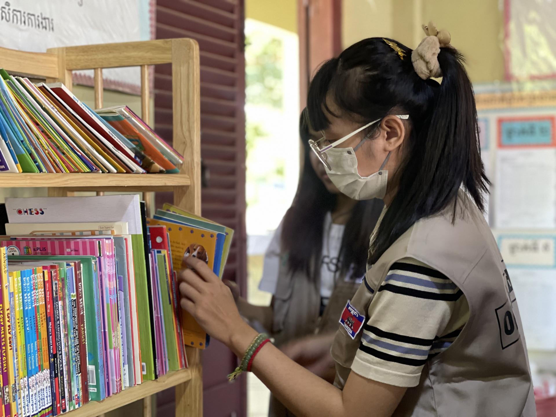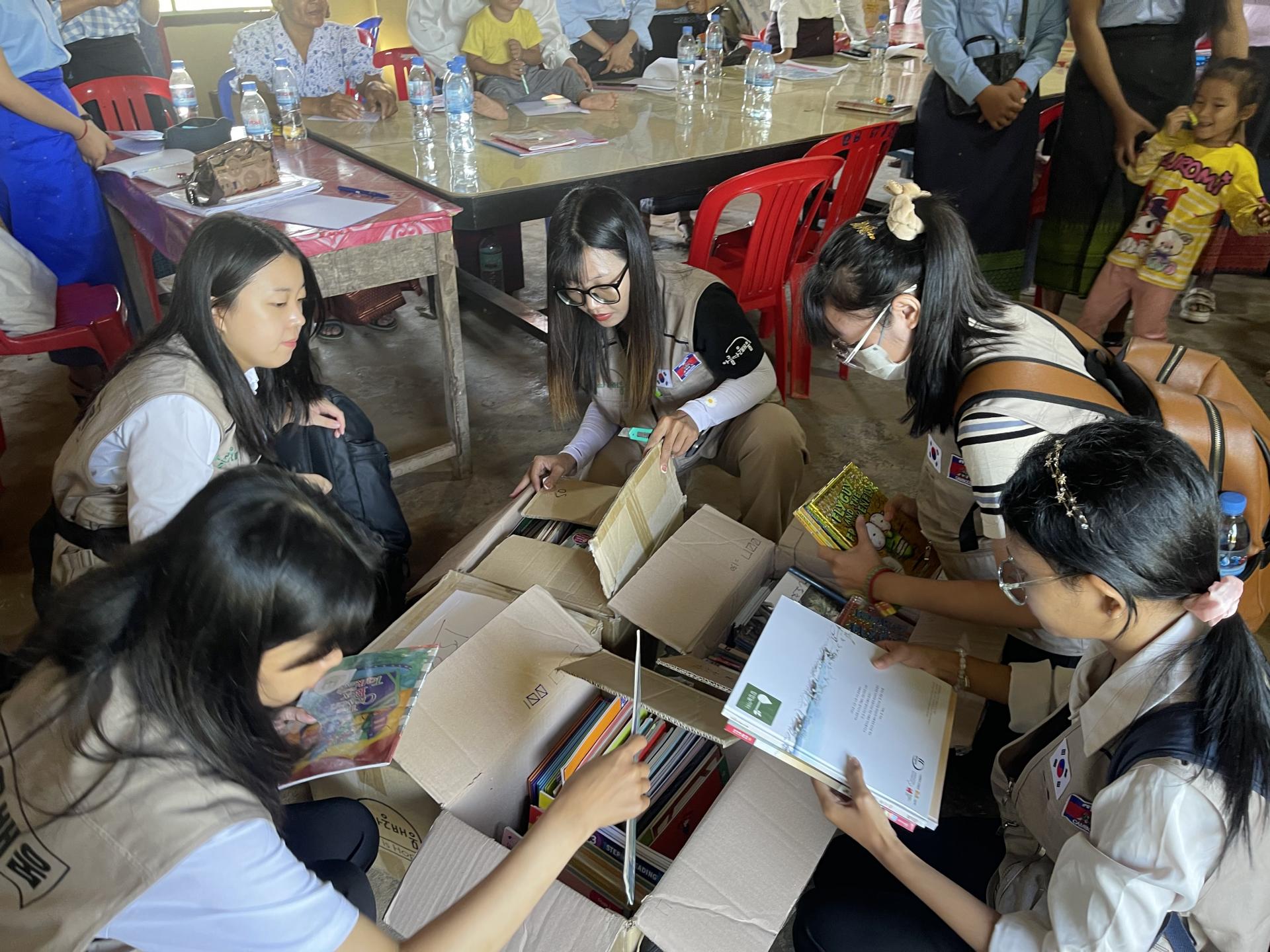 기부 물품 : 400권의 영어책, 100권의 크메르어책, 책장 등